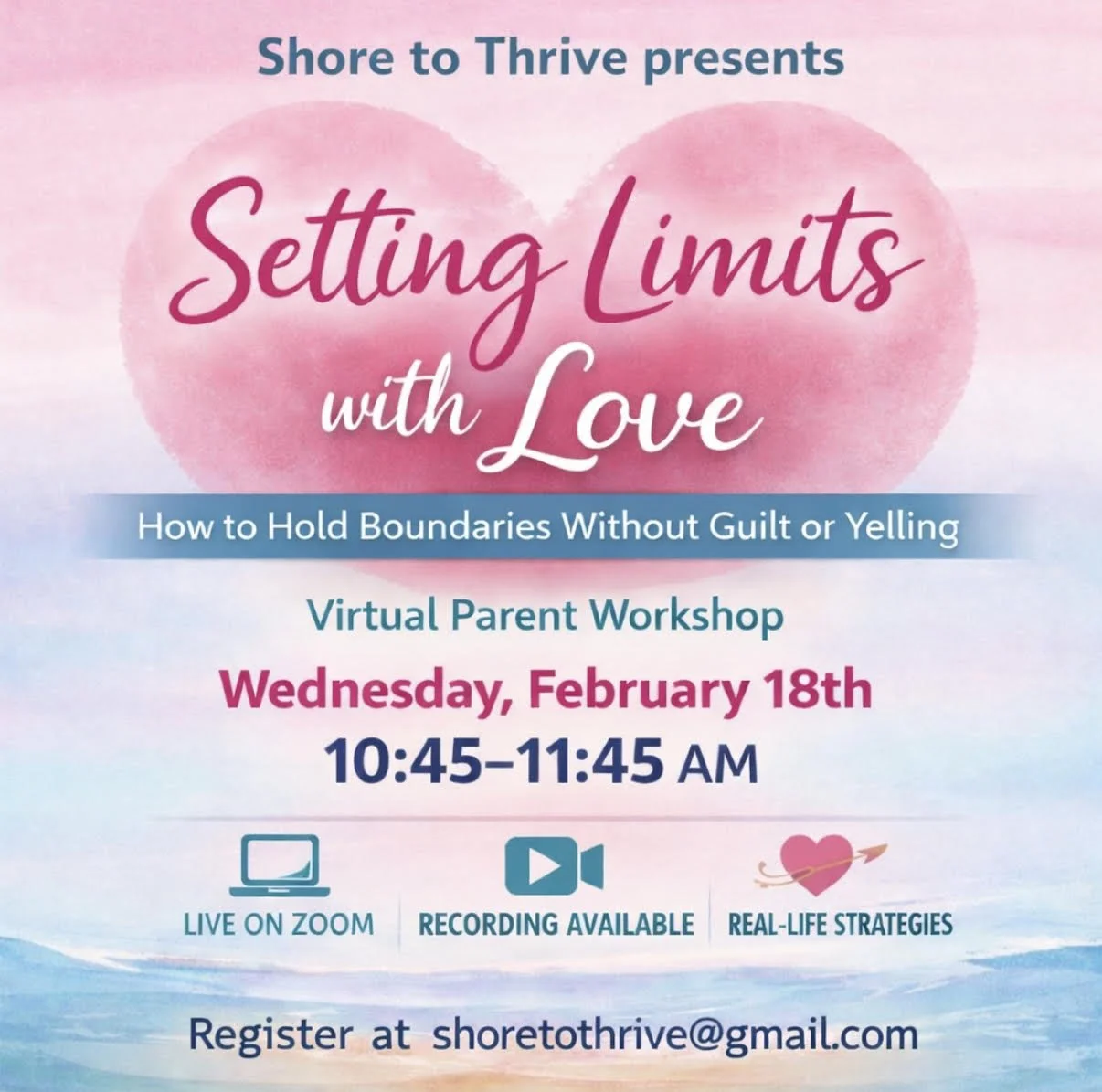 From time to time, Shore to Thrive offers special events, workshops, and limited-time programs designed to support parents around specific themes or seasons of family life.