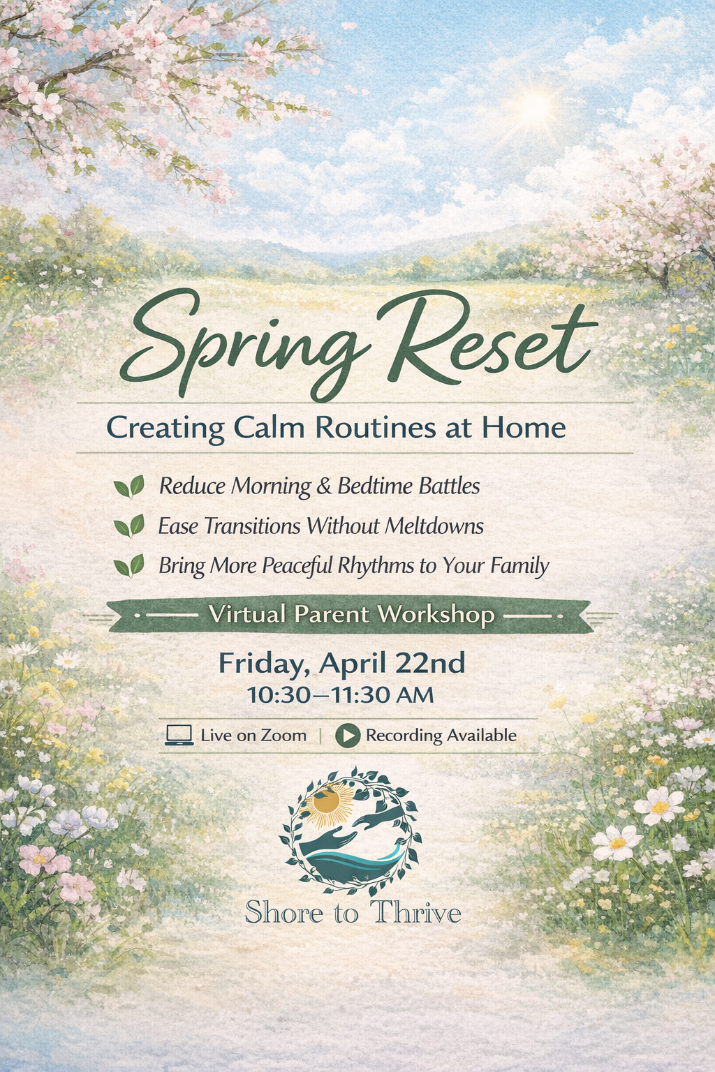 From time to time, Shore to Thrive offers special events, workshops, and limited-time programs designed to support parents around specific themes or seasons of family life.