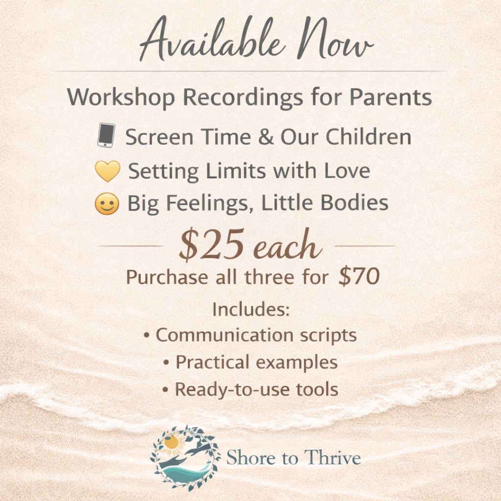 Whether you’re feeling overwhelmed, stuck in the same patterns, or just craving more calm at home, Shore to Thrive offers flexible ways to support you and your family without judgment, gimmicks, or one-size-fits-all advice.